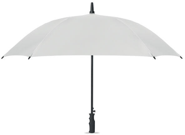 23 colos szélálló, automata, négyzet alakú esernyő 190T pongee nyersselyem poliészterből. Üvegszálas rúd és bordák, gumírozott ABS markolat.