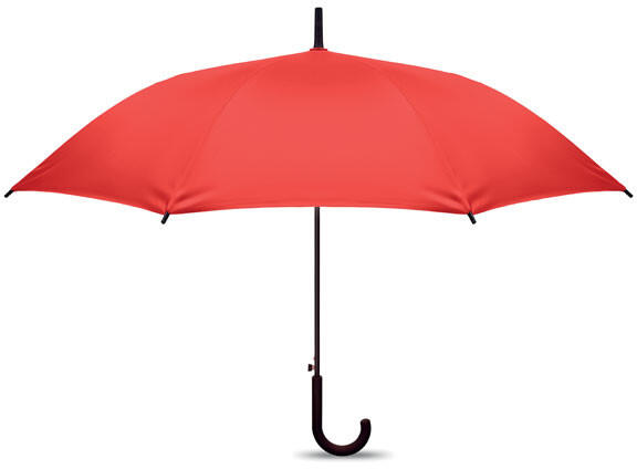 23 colos, egyenes, automatikusan nyíló esernyő fekete fém rúddal, üvegszálas bordákkal és 190T nyersselyem pongee anyagból készült panelekkel. Műanyag cikkelyzáró elemek és csúcs. Gumírozott, PP műanyag hajlított markolat. Kézi záródás.