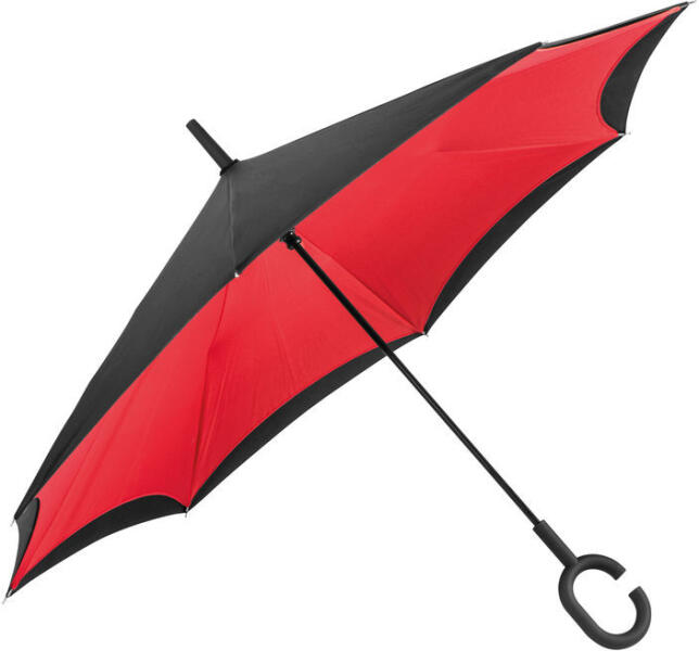 Újszerű, "fordítva működő" kiemelt minőségű, 190T pongee nyers selyemből készült esernyő, "C" fogantyúval.