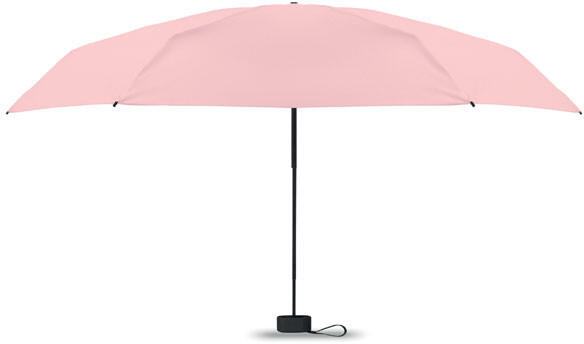 19 colos, 5 szakaszos összecsukható, kézzel nyitható esernyő 190T pongee anyagból, színazonos tokban. Fém és üvegszálas szélálló váz, fekete gumírozott markolat, csuklópánt. Összecsukott méret: 17 cm.