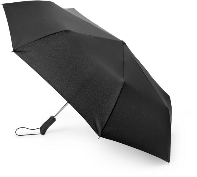 Automata esernyő Szín: Fekete Anyag: 100% poliészter poliuretán bevonattal Rúd: alumínium Markolat: műanyag Méretek: Ø: kb. 95 cm Hossza: kb. 60 cm, összecsukva: kb. 32 cm Gombnyomással kinyitható és összecsukhatóStabil alumíniumnyélSzélálló esernyő: a kifordult esernyő könnyen visszahajthatóErgonomikus kialakítású soft touch nyél zsinórhurokkal