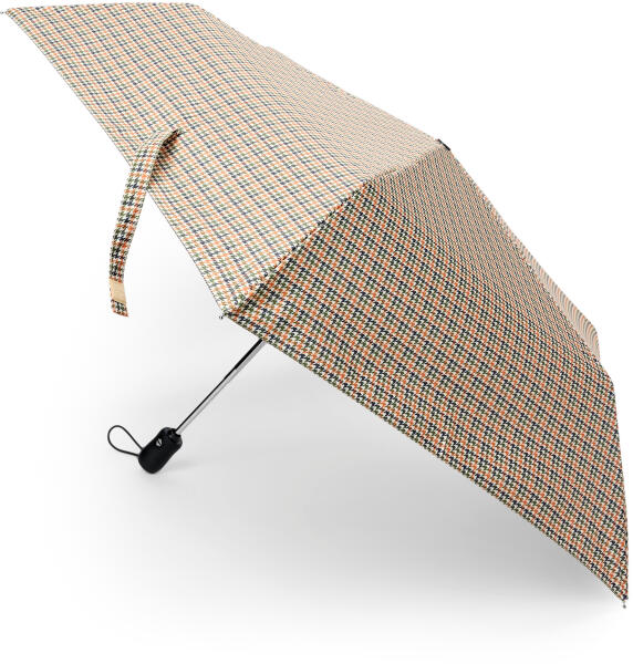 Automata esernyő Szín: Sötétkék-konyak-zöld-krémszínű tyúklábmintás Anyag: Ernyő és védőtok: 100% poliészter Rúd: alumínium Fogantyú: műanyag Méretek: Ø: kb. 95 cm Hossza kinyitva: kb. 56,5 cm, összecsukva: kb. 27,5 cm Tartalom: Védőtokkal Vízlepergető hatású, víztaszító bevonattalEsernyő táskába illő kompakt méretbenGombnyomással kinyitható és összecsukhatóSoft touch markolat rugalmas hordozófüllelModern tyúklábmintávalVíz- és szennyeződéstaszító felületStabil alumíniumnyélA bevonatnak köszönhetően az esernyő szárazon táskába tehetőTokkal