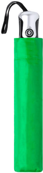 8 paneles szélálló, mindkét irányban automata esernyő fém vázzal, valamint fém és üvegszálas merevítőkkel. Csuklópánttal, műanyag fogóval és színével egyező tokkal. 190T poliészter.