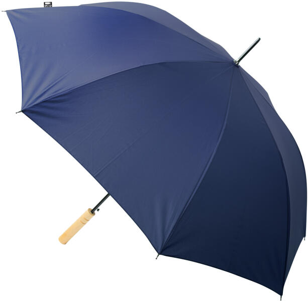 Automata, 8 paneles, szélálló esernyő fa fogantyúval, üvegszálas bordákkal és fém vázzal. Anyaga: 190T RPET pongee. Megkülönböztető RPET címkével.