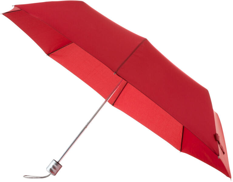 Összecsukható, manuális 8 paneles esernyő, fém tengellyel és vázzal, az esernyő színével megegyező tokban. Anyaga: 170T poliészter.